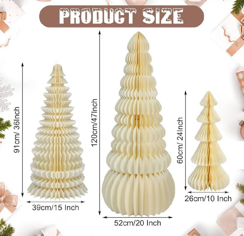 Add holiday charm to your home with this set of 3 premium honeycomb paper Christmas trees in gorgeous beige tones. Available in 47”, 36”, and 24”, they create a warm and stylish festive display perfect for tables, corners, mantels, and parties. 🎁🏠